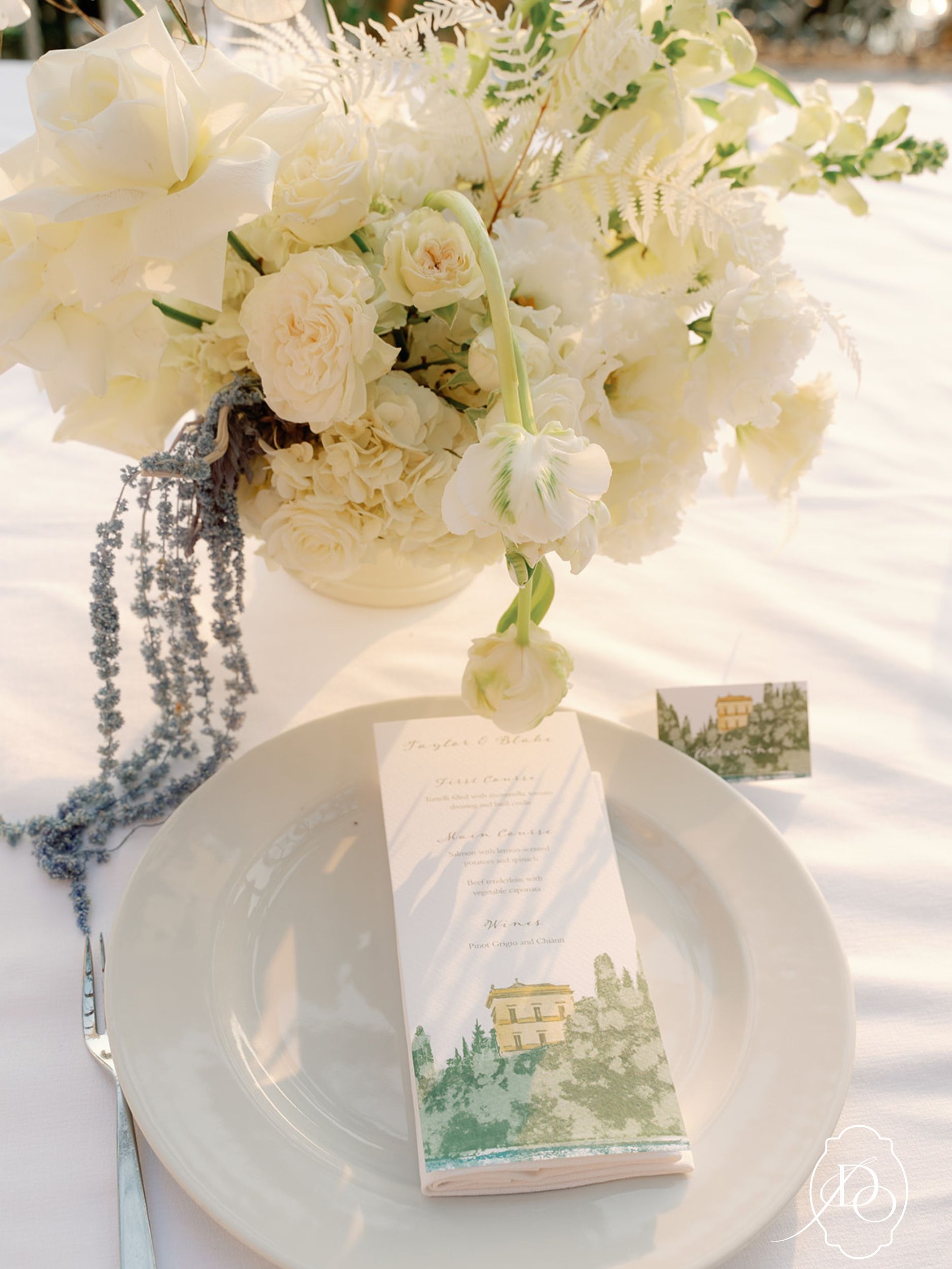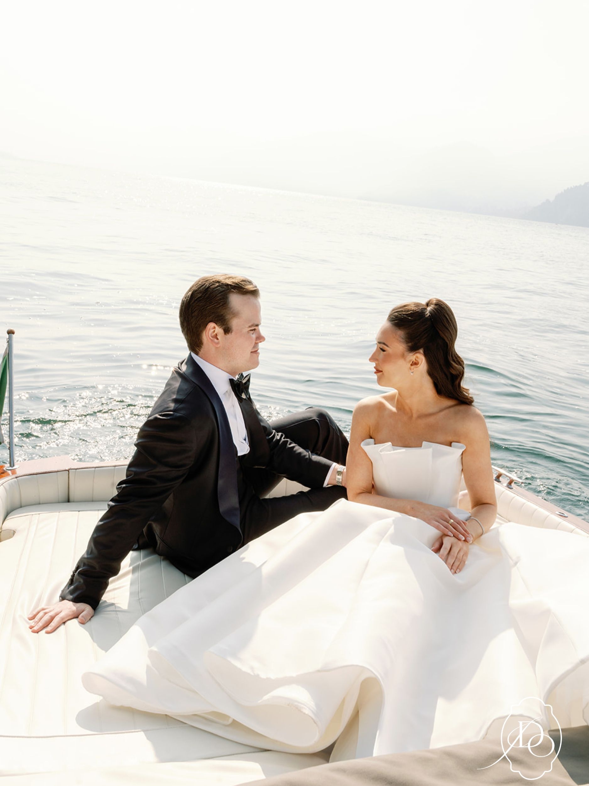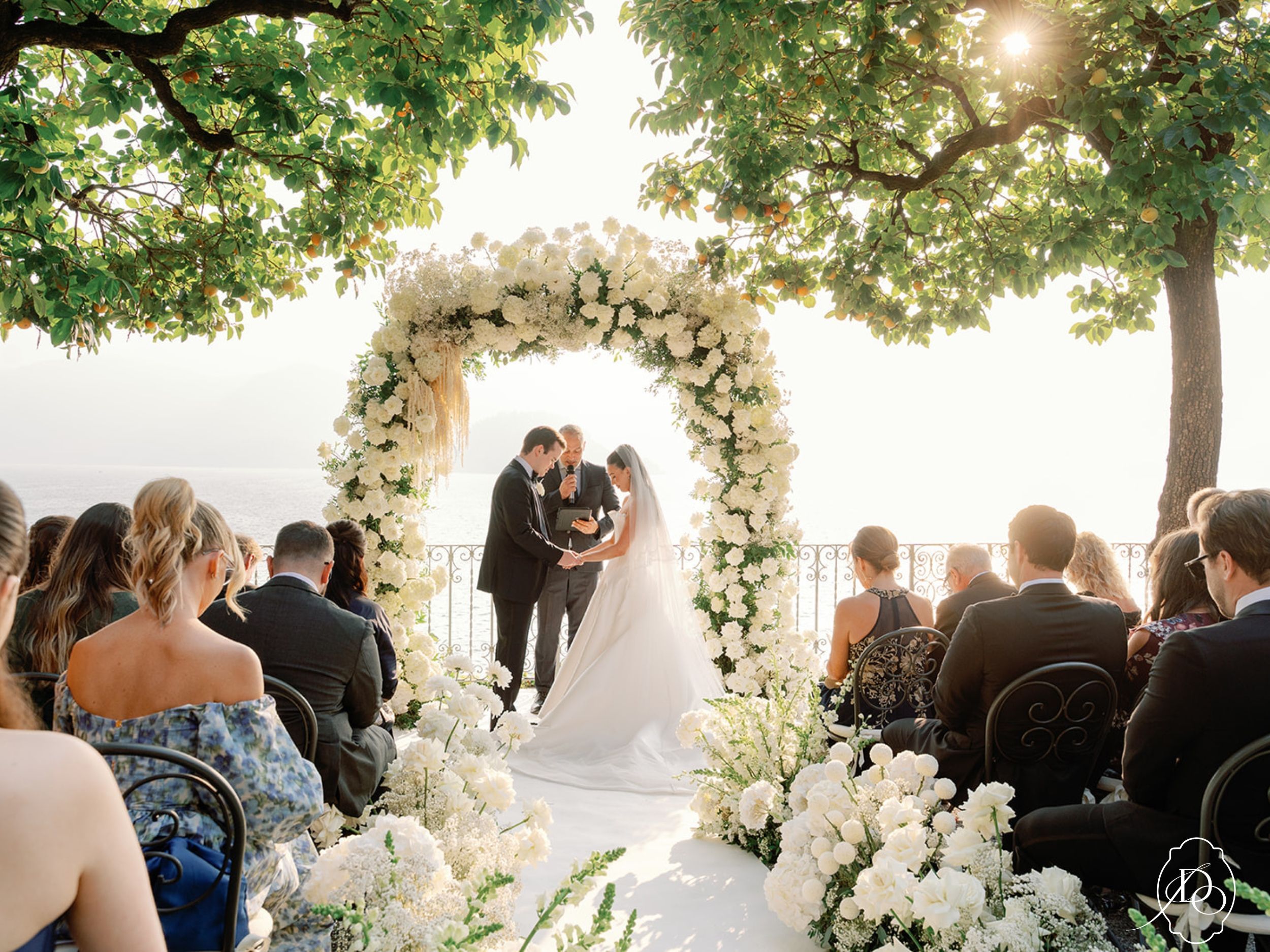 Taylor and Blake began their day in separate suites at a magnificent lakeside hotel, surrounded by their bridesmaids and groomsmen. They shared a first look right by the water’s edge, a moment charged with emotion and deep love. After a private boat ride to capture intimate memories on the lake, they arrived at Villa Cipressi. There, amidst delicate white flowers, they joined their guests for an emotional ceremony and an elegant dinner, celebrating their union in a setting of pure, timeless romance.