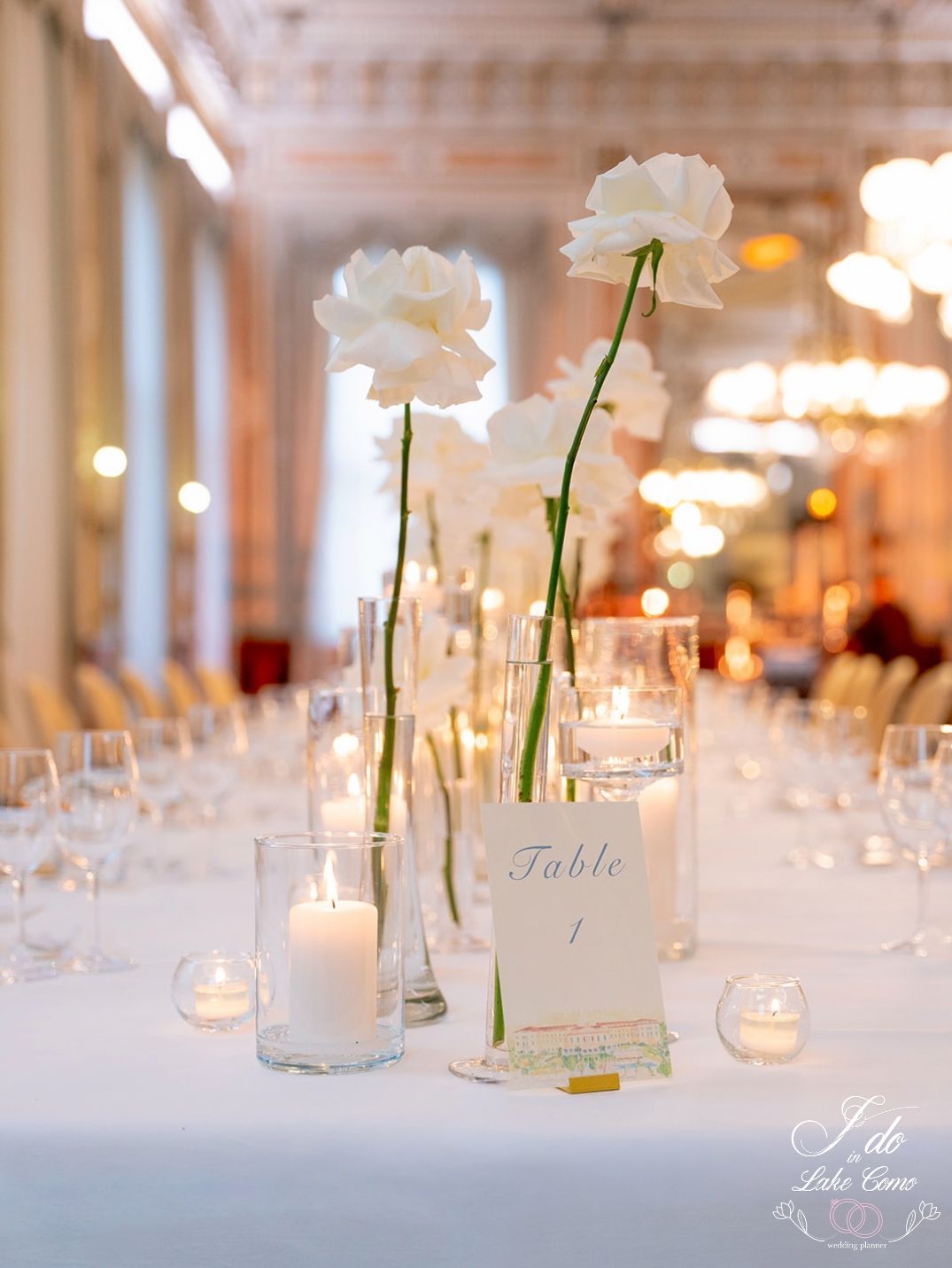 Villa Serbelloni is where Italian elegance meets lakeside fairytale — and Rebecca and Nicholas’s wedding was the perfect reflection of that. Their day began with quiet moments getting ready in the villa’s elegant suites, followed by a deeply romantic ceremony held indoors in a stunning room with glass walls that opened up to breathtaking views of Lake Como and the surrounding mountains. Delicate white floral arrangements added the perfect finishing touch to the serene and romantic atmosphere.