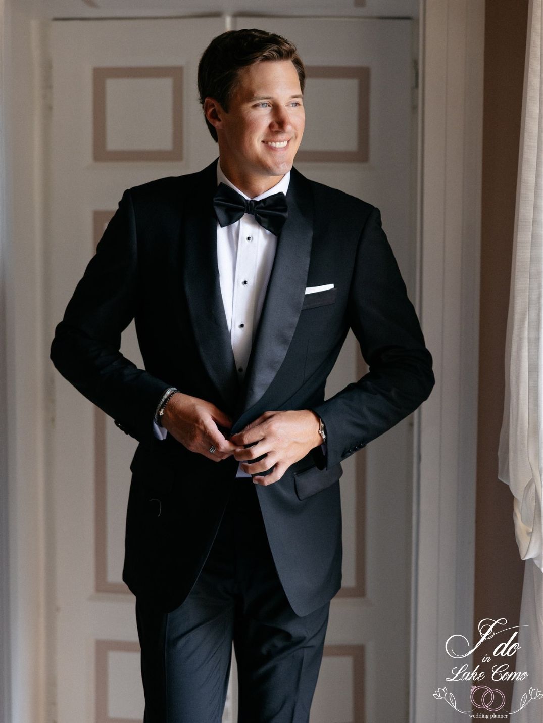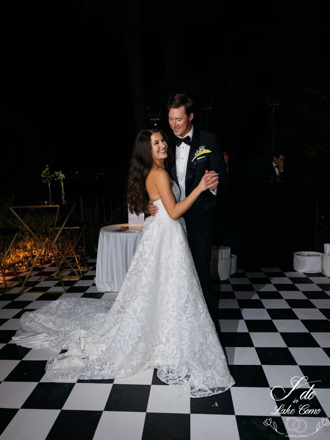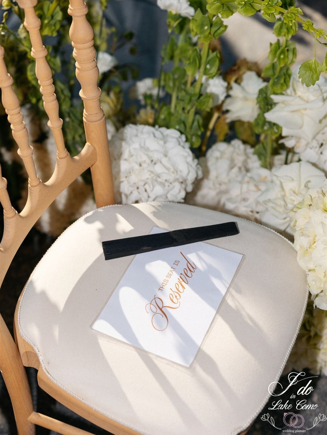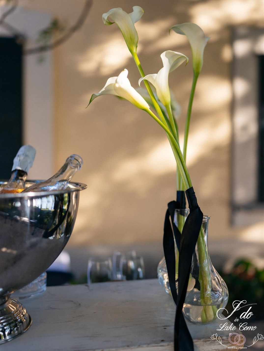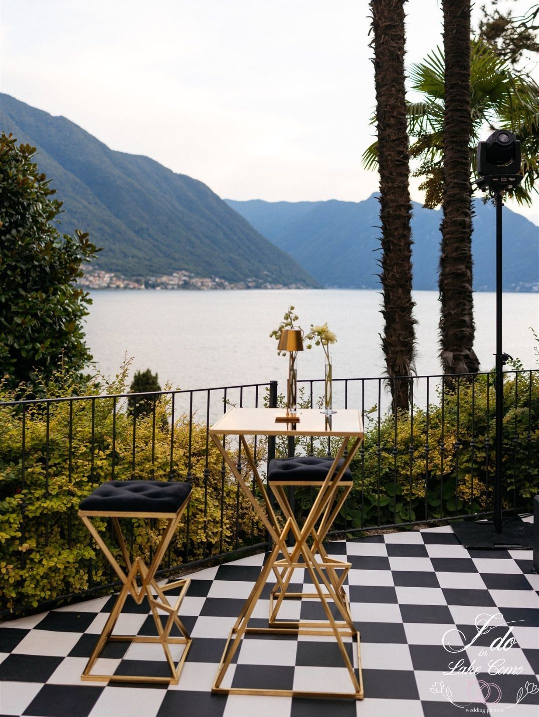 Guests were dressed in an elegant black dress code, which perfectly complemented the historical charm of the villa. After the ceremony, Madison & Michael took a romantic boat ride across the lake, capturing beautiful memories with unforgettable photos, while guests enjoyed an aperitivo accompanied by a graceful string duo.