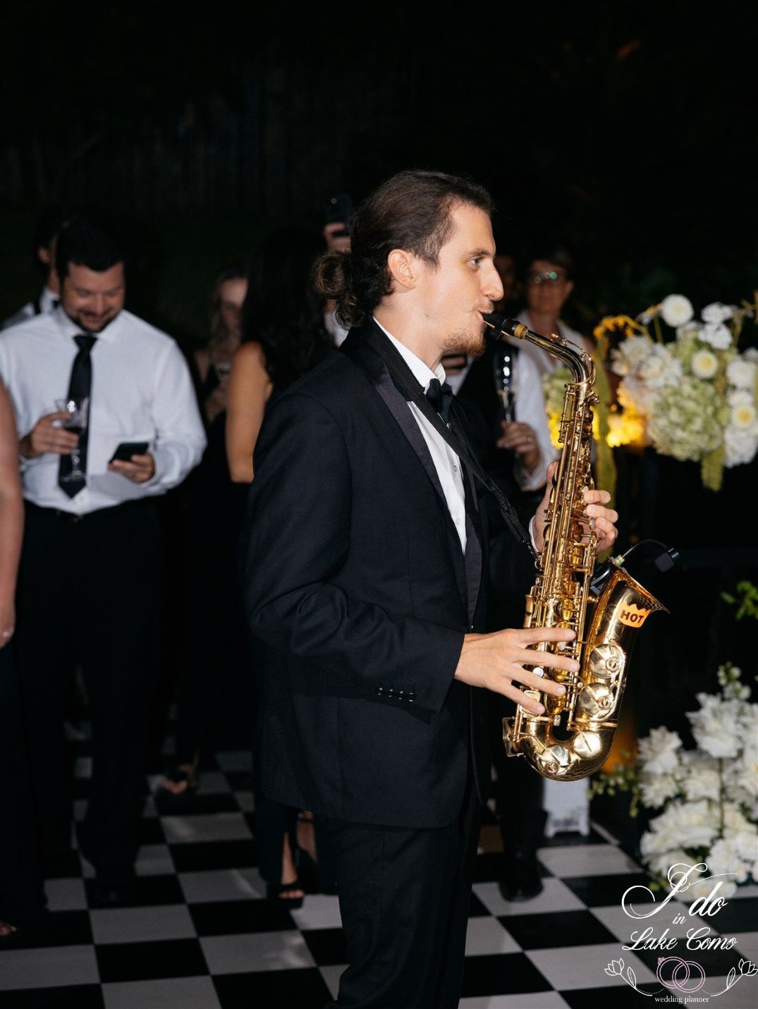The celebration continued with dinner in the stunning Loggia Segre, where guests were treated to the finest Italian cuisine. Laughter, toasts, and love filled the evening air. As the party carried on into the night, a live saxophone performance added energy and soul to the festivities — the perfect ending to a truly unforgettable day.